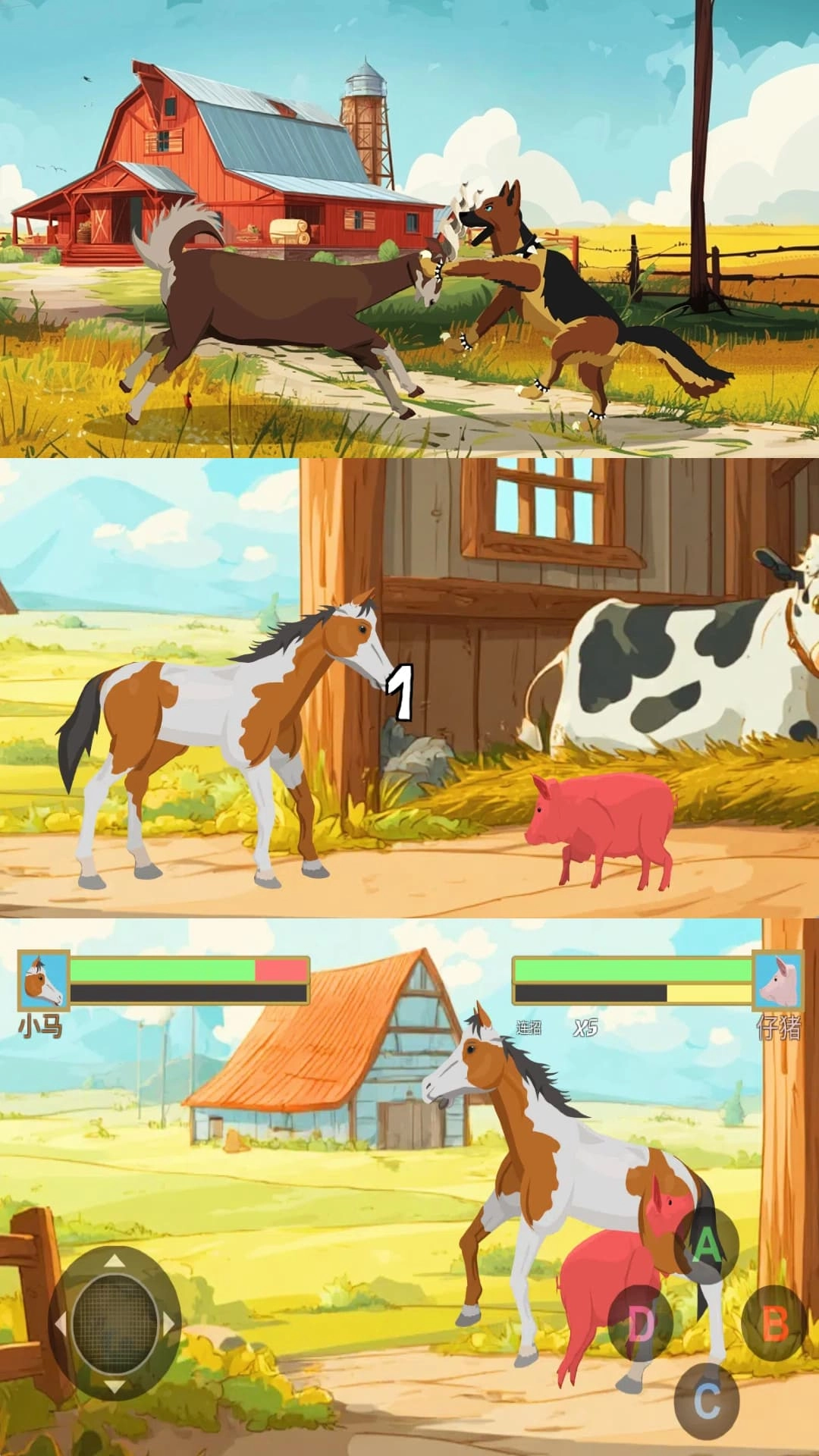 2.玩家将操控牧场中最具勇气和力量的骏马主角,为了驱逐入侵者、保护同伴而踏上紧张刺激的战斗之旅。