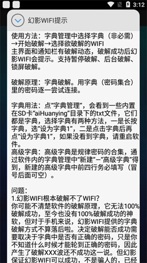 5、还有帮助说明,可以帮助用户更好的破解wifi。