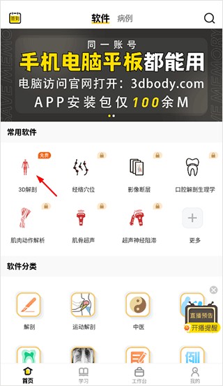 1. 第一步,打开3dbody解剖软件,接着点击3d解剖;