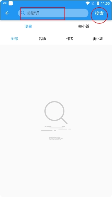 5、在搜索页面输入漫画相关的关键词,就能开始查找了。
