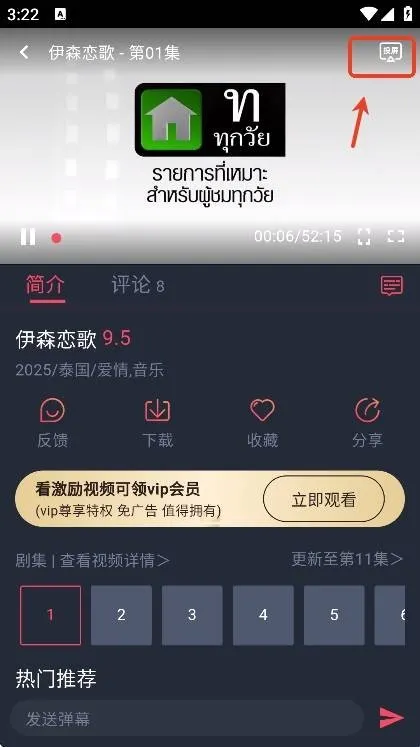 3、用户们可以点击投屏图标,使用投屏功能,获得更好的观影体验。