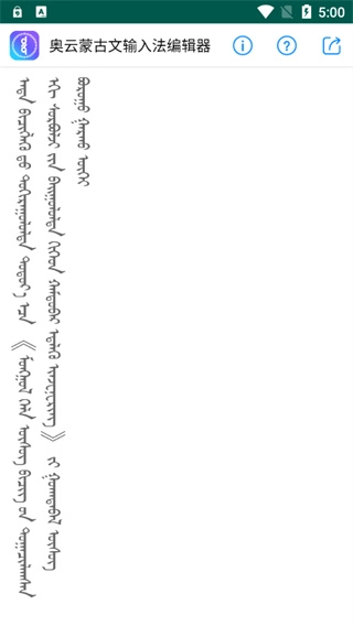 奥云输入法,这是一款专门针对蒙古文精心打造的智能输入法软件。它具备众多实用功能,像蒙古文手写识别、语音识别、智能词组联想、模糊输入以及格后缀推荐等。借助这些功能,能够助力用户更加高效且精准地开展蒙古语交流。该输入法的应用界面设计简洁,操作方便,安装完成后,迅速启用就能进行蒙古文输入。它广泛适用于日常交流、学习、办公等各类场景,对于蒙古语使用者而言,无疑是一款不可或缺的输入助手。值得一提的是,其最新版本在性能方面进行了优化,同时修复了已知的 BUG,从而为用户带来更为流畅的打字体验。