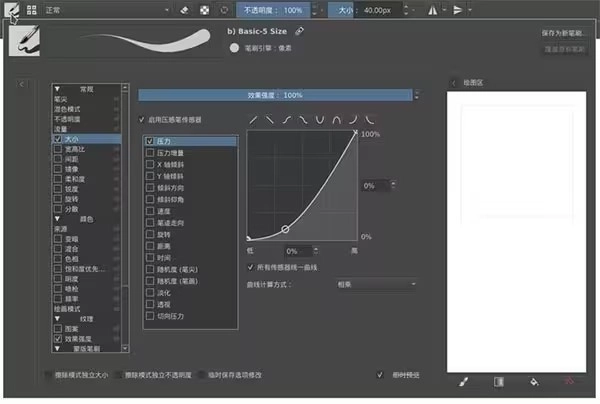 3、该软件支持用户将笔刷参数与压力、速度、笔倾角等多种输入设备传感器进行联动,以此达成笔刷属性的动态调节,增强绘画过程中的个性化控制能力。