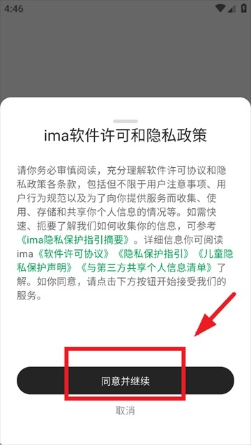 1、于本站安装ima后,打开软件,阅读并同意隐私政策,即可进入登录界面。