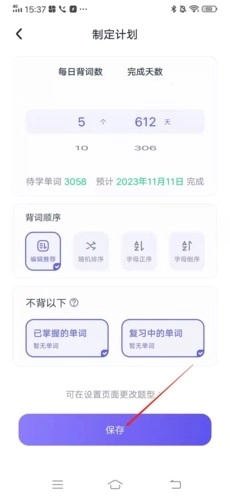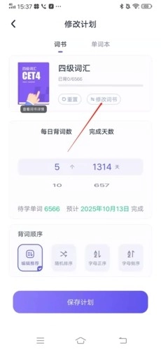 5、用户后续只需设置好背单词计划,点击【保存】,就能成功更换单词书。