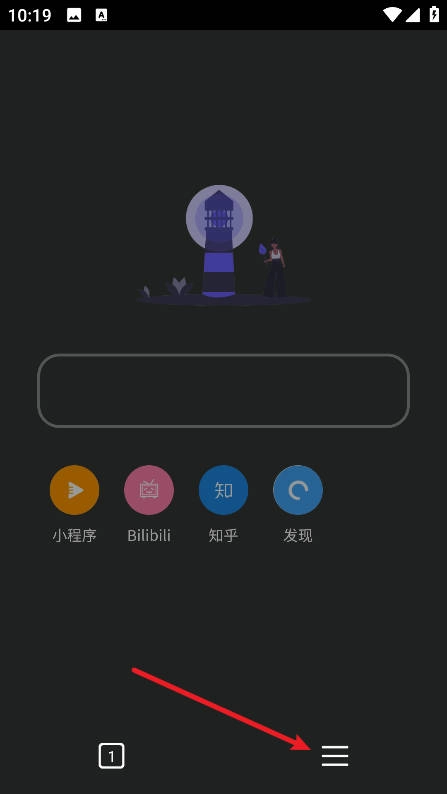 1. 启动灯塔浏览器,轻点底部右下角的“三条杠”菜单。