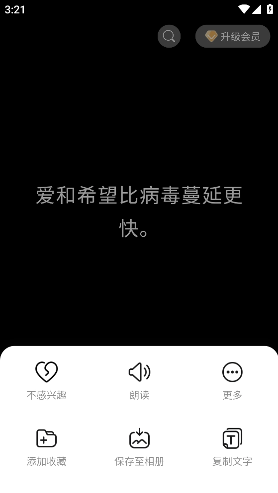 2、有两种方式能将内容保存至手机相册进行交互。其一,点击分享按钮,即可完成保存;其二,长按屏幕,呼出菜单,从中选择保存到手机相册。