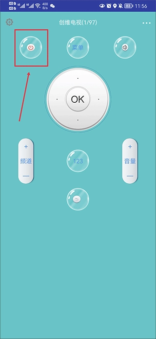 3、把手机对准家电,点击电源键,以此测试遥控器是否匹配。
