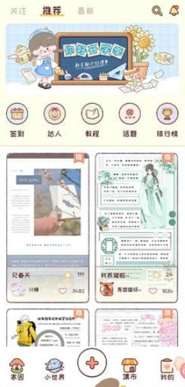 5、小世界频道会呈现其他玩家的创作成果,在浏览时,你能够从中获取灵感,助力提升手账设计方面的灵感。