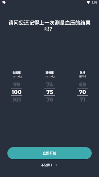 当您进入App,系统将提示您录入最近一次的血压及心率测量结果,以方便后续进行追踪与分析。