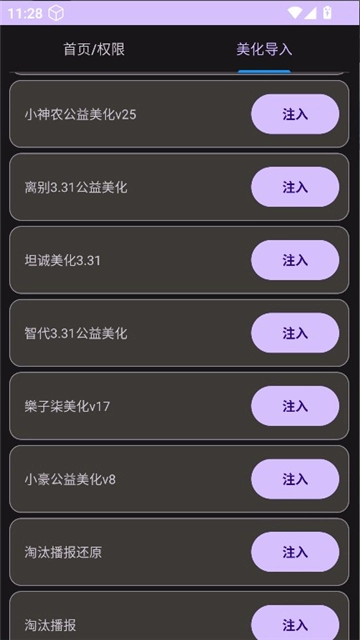 成功连接之后,就能挑选任意一款美化包来进行注入。
