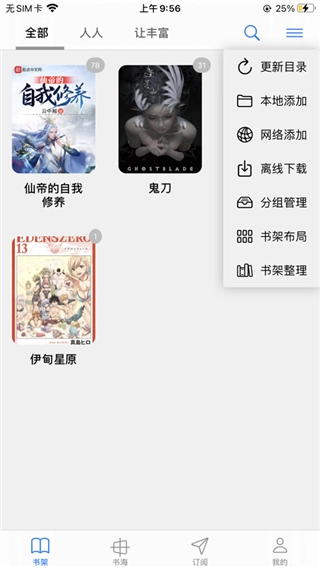 【书架】对书架上的书籍进行管理,可随意排序并整理布局。