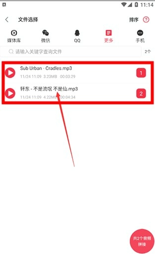 - 选择多个你想要合并的音频文件。