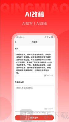 2. 支持改稿操作,只需把原文复制粘贴到输入框,接着输入想要改动的想法,即可实现优化与润色。