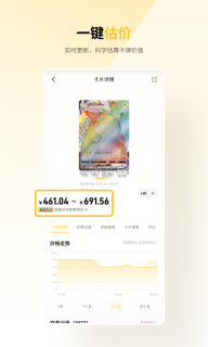 【一键估价】借助历史数据与趋势分析,从多维度对卡片当下的市场行情进行预测,助力您精准评估卡牌价值。