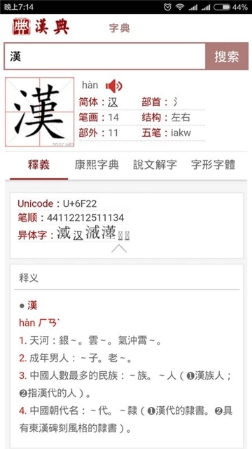 汉典app手机版是一款由广州市九次方网络科技有限公司开发的汉语学习词典软件,软件内收录了非常齐全的汉字数据资料,用户可以通过本软件快速查询难懂的汉字,规范汉字使用。