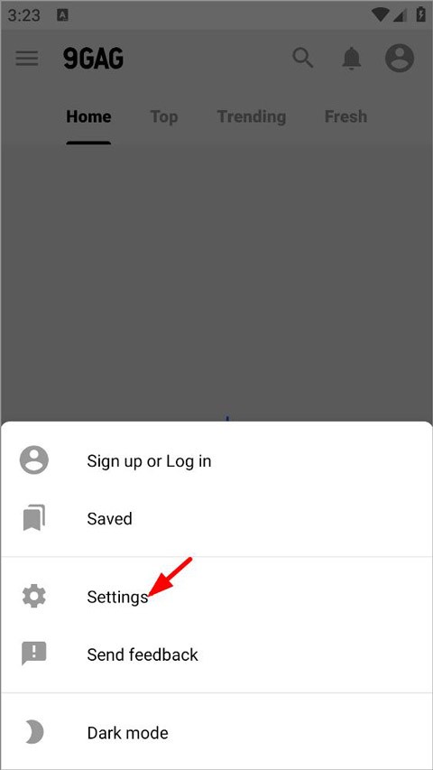 1. 用户开启9gag,登录后进入首页,于首页点击右上角的头像。