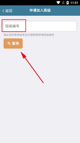 2. 接着输入你想要加入班级的“班级编号”,再点击“查询”按钮。