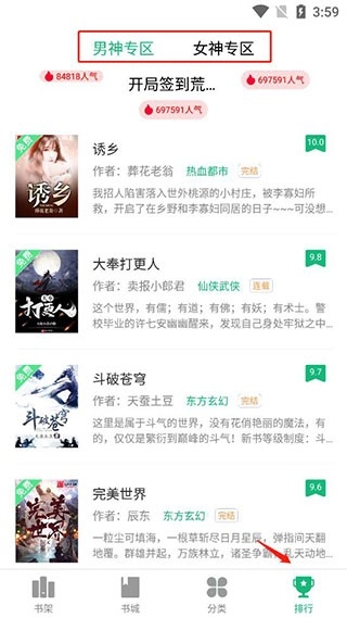 6、此外在排行中也精选了男生专区和女神专区最受大家喜欢的小说,不知道看什么热门小说就可以来这里看看大家都爱看什么;