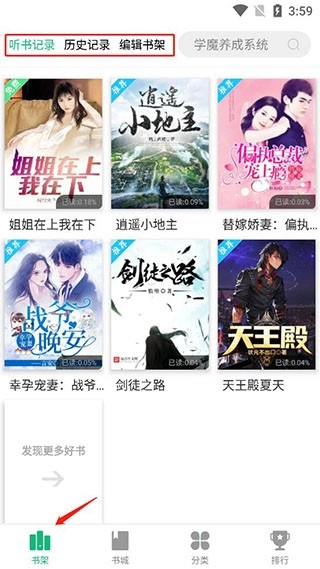 7、在书架中就可以查看自己阅读过的小说记录以及听书记录,你也来看看吧!