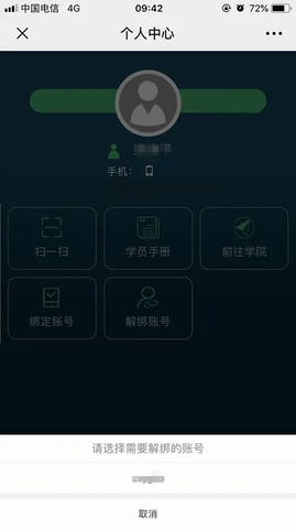 4. 若本单位更换管理员,可选择“解绑账号”,随后由继任管理员在公众号“个人中心”重新进行绑定。