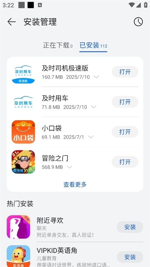 3、在这个页面可查看设备上已安装的所有应用列表。列表中会显示应用名称、大小、安装时间等信息