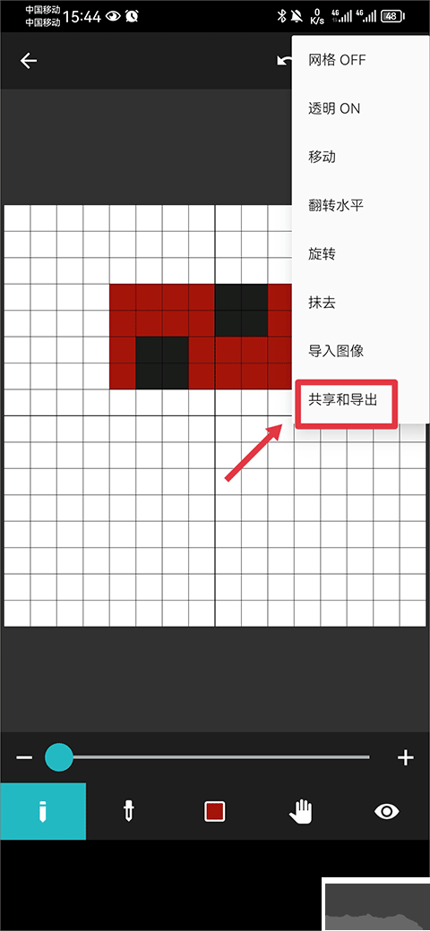2. 创作与保存流程:创建画布后,使用下方工具进行创作,完成创作后,点击右上角的三点图标。