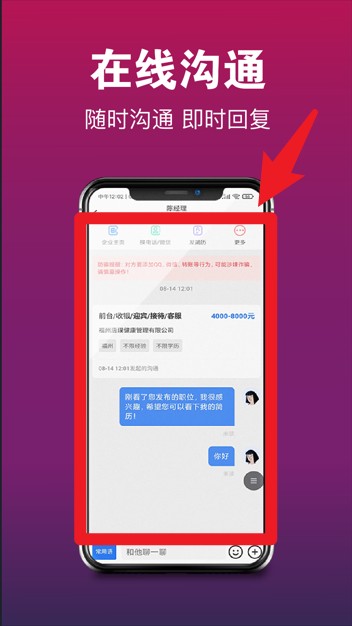 3、进入沟通界面,即可与企业进行在线聊天。该功能支持实时消息回复,能够有效提升沟通效率与成功率。