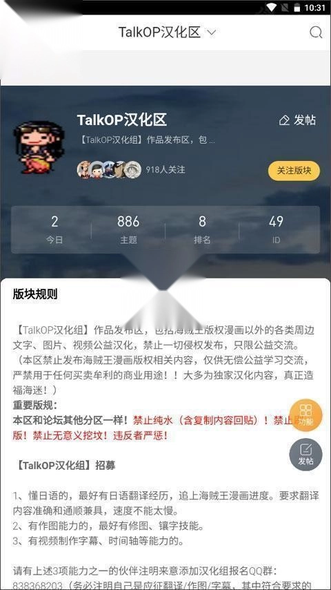 2、进入海贼王分析、绘画、讨论、汉化、交流、自曝、分享等分区。