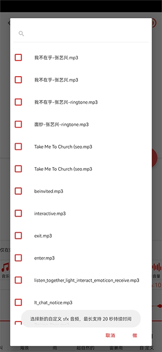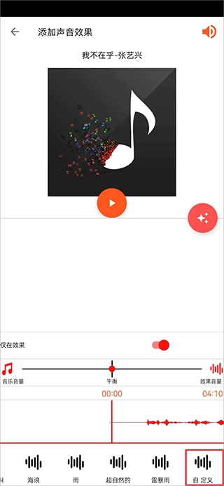 2、选择音频文件后,在添加声音效果界面中点击自定义(由于效果中没有水下效果,因此用户需要先在手机上一个水下效果)