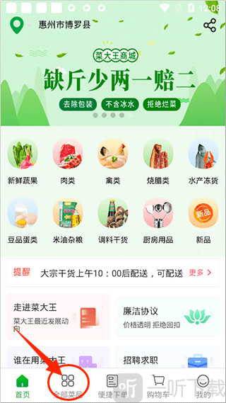 菜大王买菜是一个可以让家庭主妇们无需到达菜市场就可以轻松购买各种备菜的商城购物软件,极大地省下出门买菜所花费的时间与精力。处理基础的蔬菜外,平台也提供了肉类、水果与水产等多元选择,用户可以尽情地浏览并购买便宜且实惠的商品。