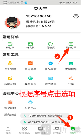 1.打开软件后点击右下角“我的选项”,再点击“我的订单”。
