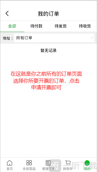 2.进入我的订单,点击想要开票的订单,点击“申请开票”。