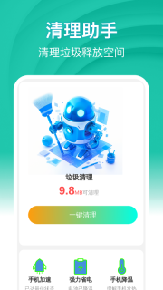 1. 点击进入后,就能看到软件功能,可一键清理手机内存。此外,还能对手机进行降温处理,以此实现节省手机电量、增加续航,让手机使用寿命延长几年。