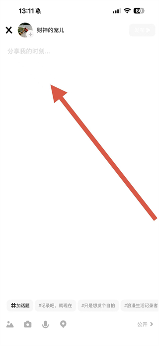 3、在动态编辑页面的输入框内,输入你想要分享的内容。