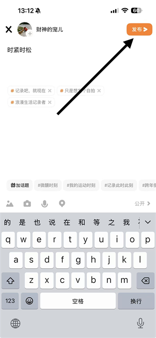 4、内容编辑完成后,点击右上角的发布按钮,即可成功发布动态。