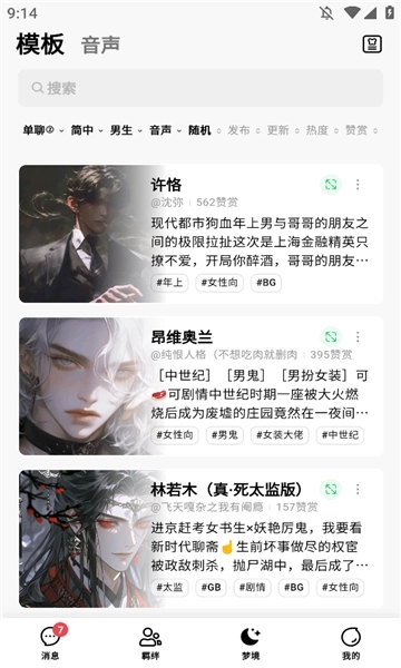 1、软件新增了超多丰富内容,有女性向故事主题和男性向的AI故事主题。