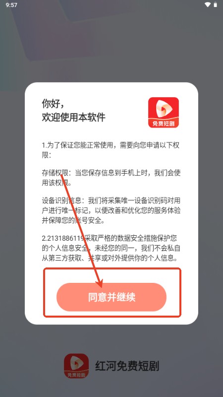 1. 开启本页面所对应的软件,进入软件界面后,点击“同意并继续”。