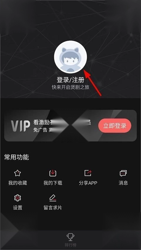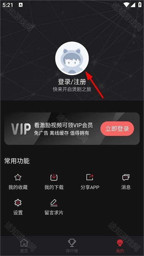 3. 进入“我的”界面后,可点击上方【登录/注册】按钮。