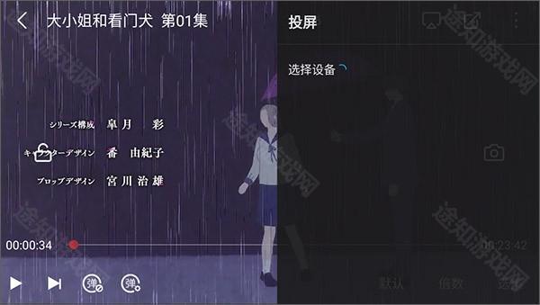 3. 轻点播放页面上的【投屏】按键,此时App会自动搜寻可用于投屏的设备。