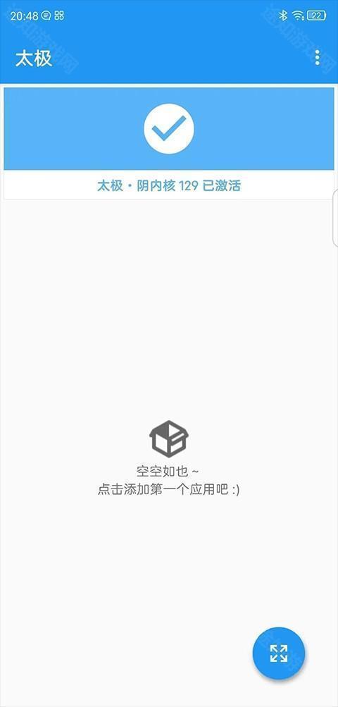 2、进入太极模块后,主页面会出现“空空如也 点击添加第一个应用吧”的提示。此时,点击主页面中间的空白区域,就能将应用添加到太极模块。