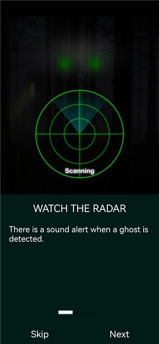 1、打开应用,屏幕底部有一个幽灵雷达,幽灵观察员会在检测到存在时提醒用户,并给出灵魂的位置;