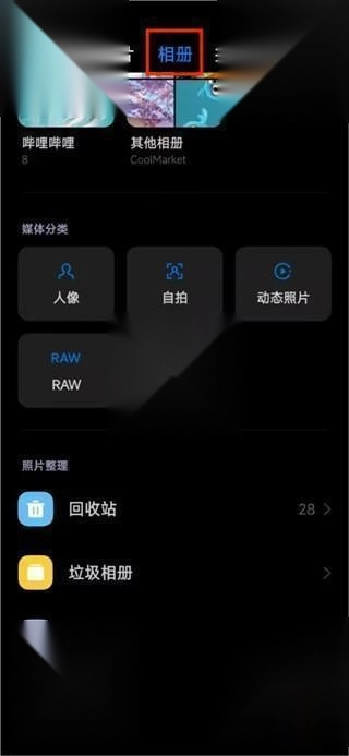 1. 开启软件,点击位于中间位置的相册功能,接着向下滑动页面至最底部,此时能看到有一个回收站功能,点击该回收站功能。