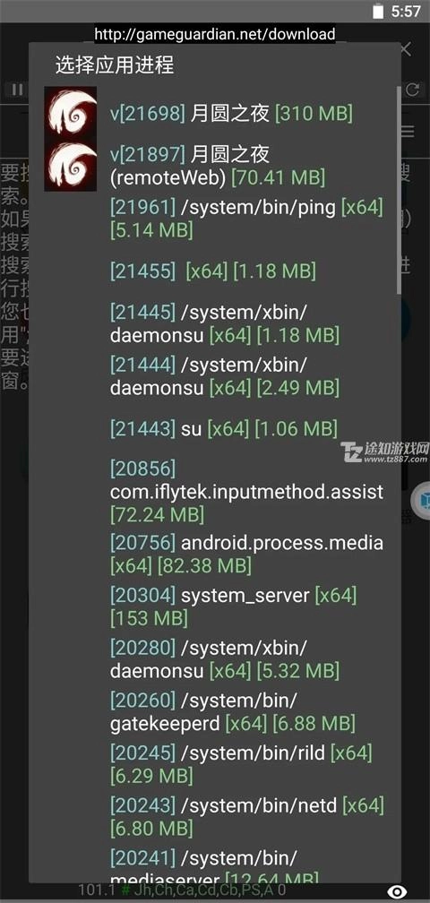 打开后,它会以这种形式呈现。若要对某款游戏进行修改,只需先打开,接着打开游戏,随后再次打开并选择目标游戏进程(例如,像月圆之夜这款游戏,选择内存较大的,即第一个进程,如下所示)。