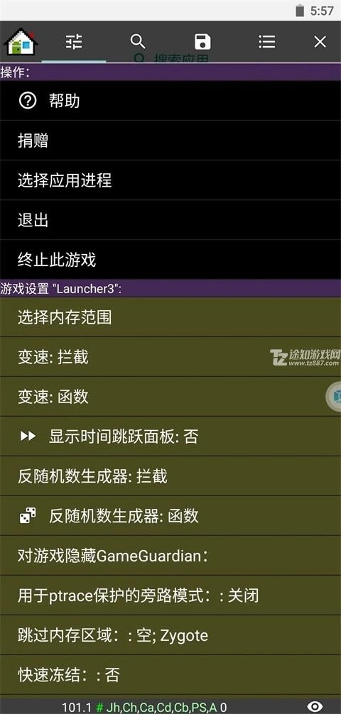 如图所示,第一栏中最为常用的功能包括内存范围选择、游戏变速、时间跳跃、游戏隐藏以及过保护重启。
