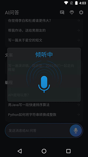 3、允许用户以语音输入的形式向AI机器人提出问题,使用极为便捷。