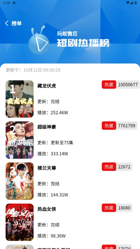 3. 设有热门榜单,可观看最热门短剧。