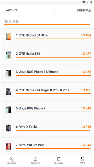 5、此外,用户能够查看其他手机的跑分数据,并加以比较。