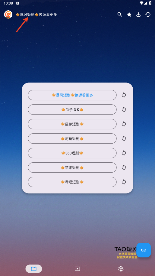 2. 在首页界面,点击位于左上角位置的数据源,从中找寻自己感兴趣的短剧即可免费观看。