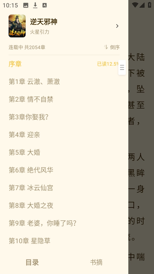 4、在书城中挑选一本自己喜欢的小说,比如《逆天邪神》,向左滑动屏幕就能开启阅读。